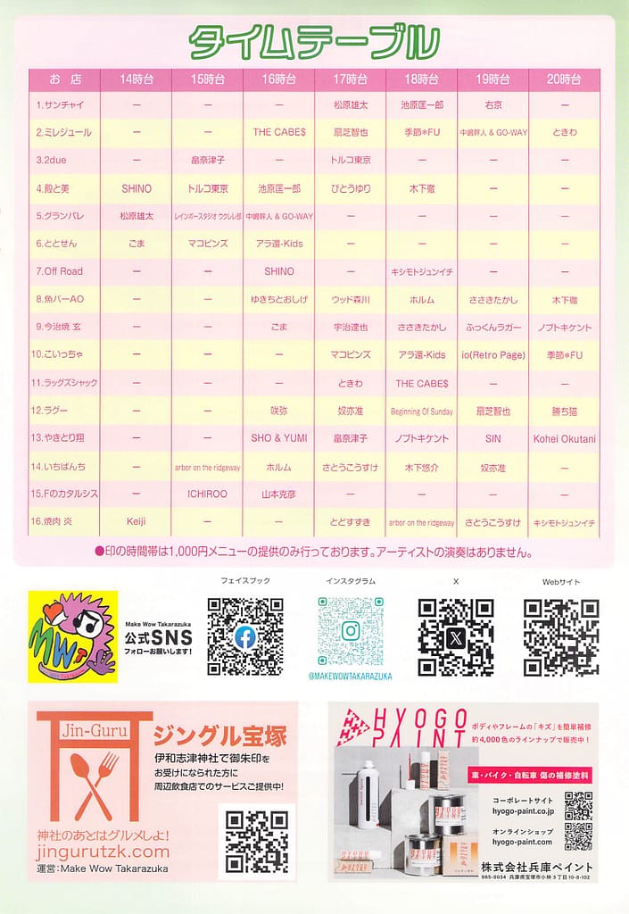 各店舗の公演は1時間ごとの入れ替え制(約20分演奏)です。