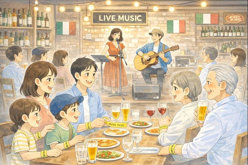 生演奏とともにぜひ飲食店をはしごしてお楽しみください。