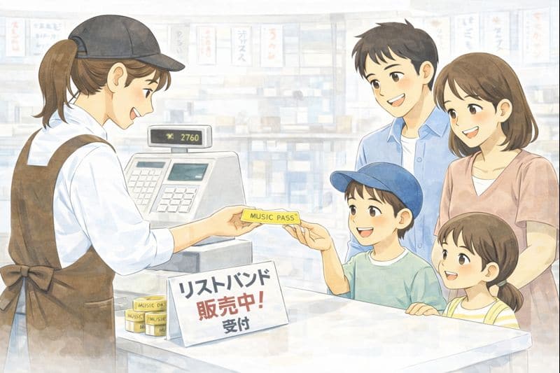 予約番号またはお名前をお伝えのうえ、リストバンドをご購入ください。